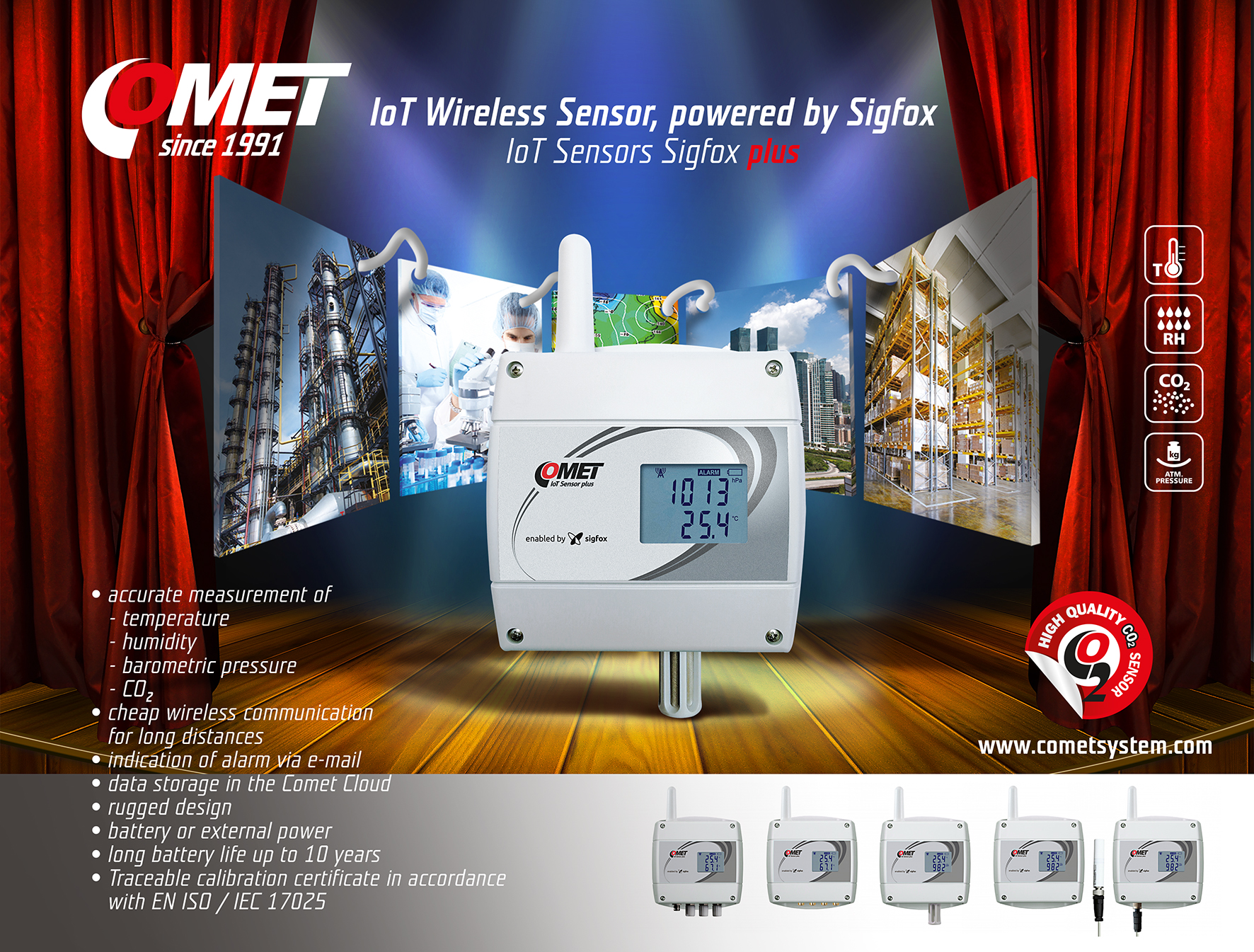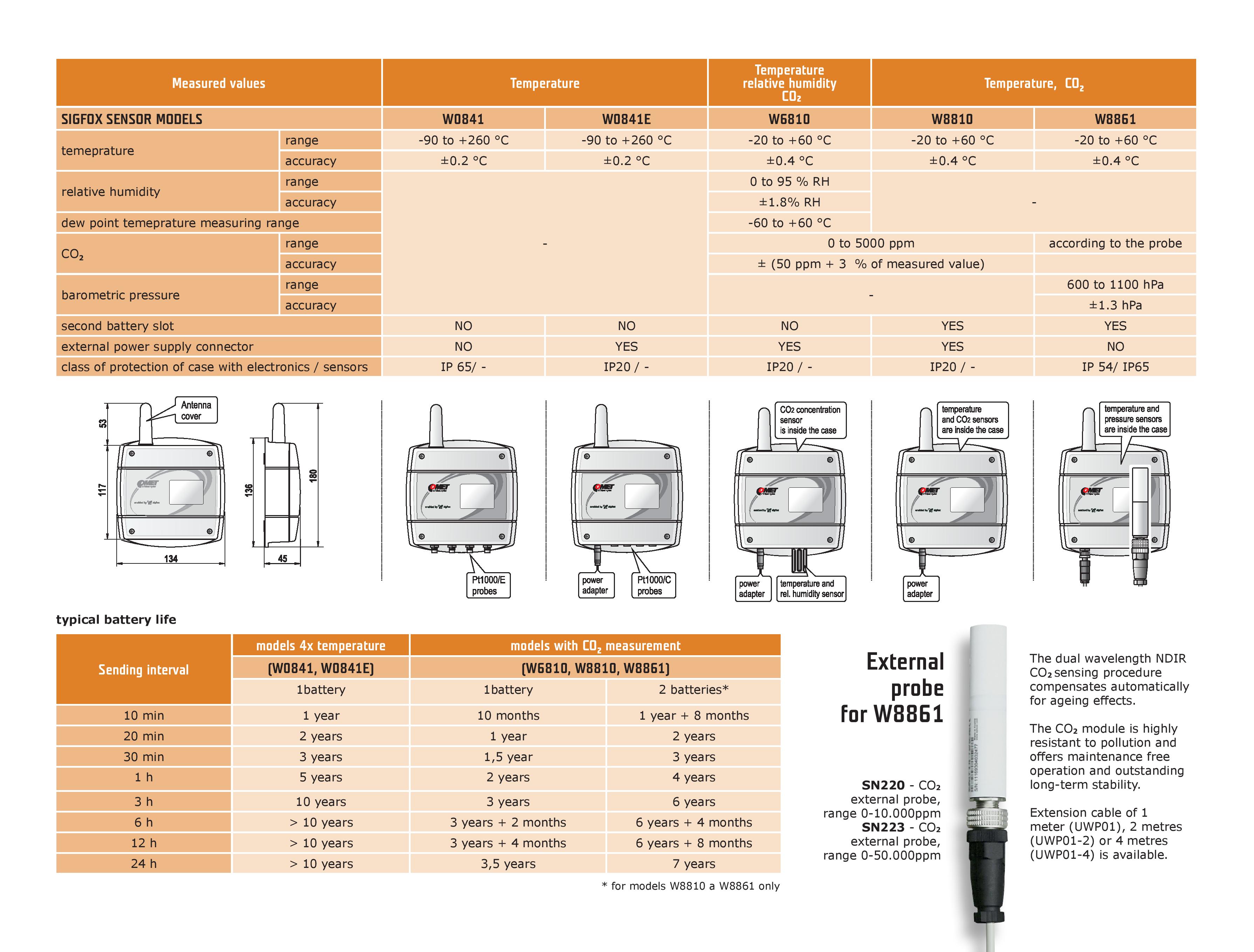 ● Ready for IoT Sigfox, WiFi or GSM● Accurate measurement of temperature, humidity, dew point, two-state events ● Nonvolatile memory (GSM mobile logger) ● Various type of alarm indication (SMS, JSON, e-mail, visual, acoustic e.g.) ● Rugged design ● COMET Cloud and software for data analysis and storage● Get Sigfox coverage details in one step. Check the Sigfox coverage at your place.