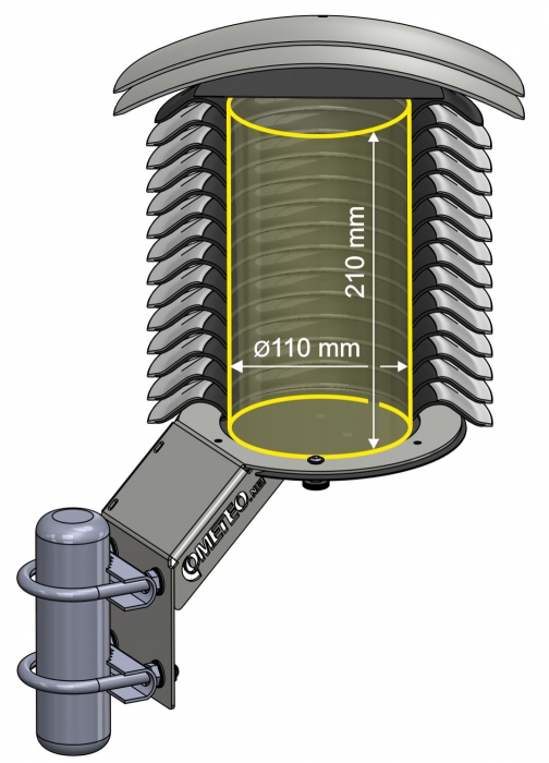 Cylindrical space with 110mm diameter and 210mm height is available inside of the plates for installation of entire climate measuring device with minimized solar radiation.