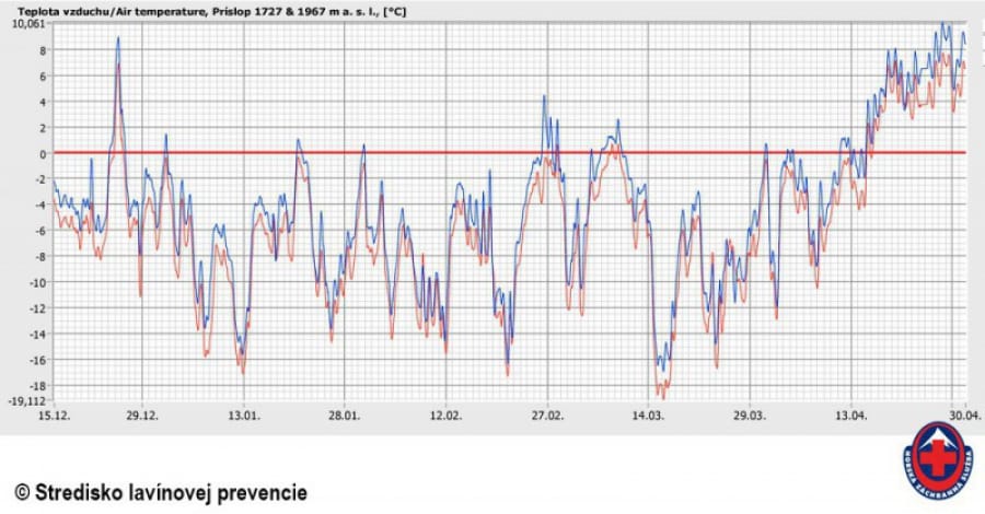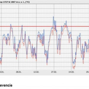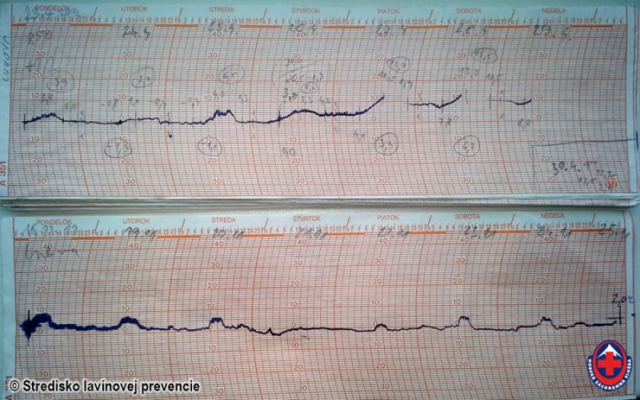 In recent years, thermographs exchanged for modern digital sensors, which are much more precise and their storage capacity is incomparable. The sensors are located in the profile Chopok and Príslop - in the Western Tatras, where they monitors the temperature at the interface of snow and soil. Sensors measured in 10 min intervals and downloading of data takes place every 2, 5 months. On Chopok ongoing continuous measurements over 40 years.