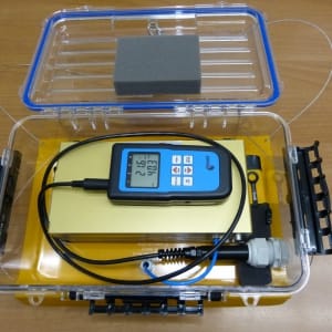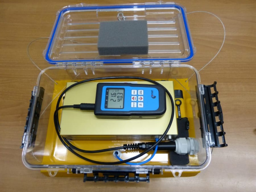 Yellow box in case is the optical dust meter, onthe impinger is located thermometer hygrometer Commeter D3121, right next to the impinger is still" little yellow USB" - it is GPS logger that records the route and of course height.
