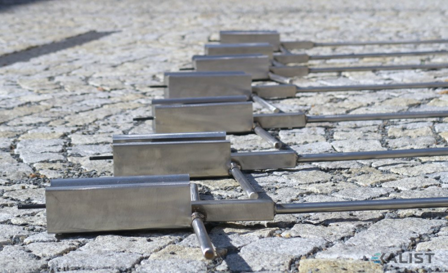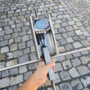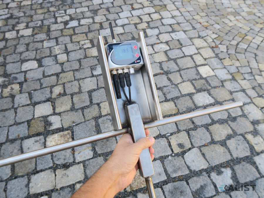 We manufactured long stainless steel probes with a pointed penetration tip. The hardened stainless steel ensures strength and durability, allowing the probe to be inserted deep into the biomass. The device itself is mounted in a stainless steel cradle, which features an extended edge to protect the unit from mechanical damage.
